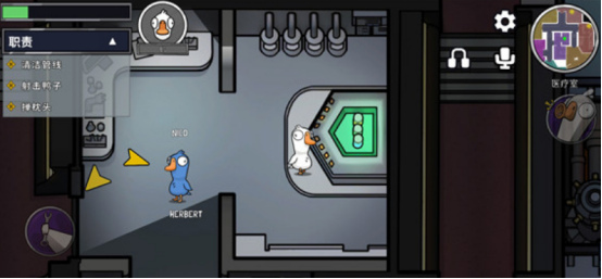 《鹅鸭杀》的核心玩法围绕推理与策略展开。玩家在进入游戏后会被随机分配至不同阵营,需依据各自的任务目标展开行动。通过讨论、投票、驱逐等方式推进局势发展,最终帮助所属阵营赢得胜利。该游戏最初在PC平台上线时便积累了极高人气,移植至移动端后不仅保留了原有的经典机制,还新增了多项功能,如实时语音沟通与社交系统,进一步增强了互动体验。其中,鹅阵营的主要职责是维护飞船各项系统的正常运行。