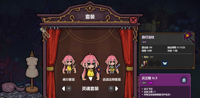 套装的核心就是灵之镜遗物,效果是很不错的,直接可以解锁永久飞行,而且法术的上限还可以增加。另外还有三点天赋,最多就可以装四根法杖。所有的法杖全部都会拥有守护杖灵,不仅可以自动的战斗,而且回魔也会快50%。同时可以抵挡敌方的飞弹,从安全感方面来看还是很不错的。如果直接穿三件,那么蝴蝶飞弹就会从原先的三个变成5个,伤害可以直接上涨到40%。在对付小怪时真的是比较爽,所以后期一定要凑齐,这是一个主要的关键。