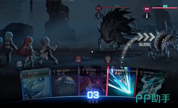 本作的核心玩法围绕卡牌对战展开,融入了压力值与EP两大关键系统。新手阶段需跟随引导完成基础流程,掌握角色出招逻辑。战斗中,敌人即将释放的技能会通过头顶提示展现,同时克制关系也会清晰标注,合理利用属性优势并及时应对攻击节奏,是取胜的关键。值得注意的是,每位角色都拥有独立的压力值设定,持续受到伤害会导致压力累积,一旦达到临界点便会进入崩溃状态,在此期间卡牌将无法使用,因此控制压力值处于安全范围至关重要。