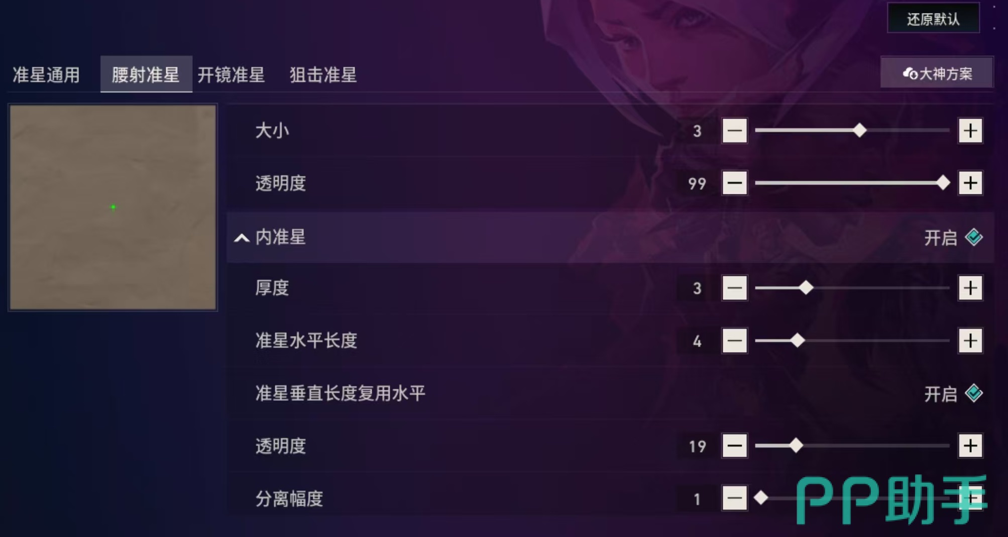 关于颜色选择,建议采用高对比度色调,如亮绿色、紫色或浅蓝色,这些色彩在多数地图背景下均不易被背景干扰,确保准星始终清晰可见。透明度建议控制在50%至70%之间,既能维持足够的辨识度,又不会过度遮挡视野范围,实现观感与实用性的平衡。