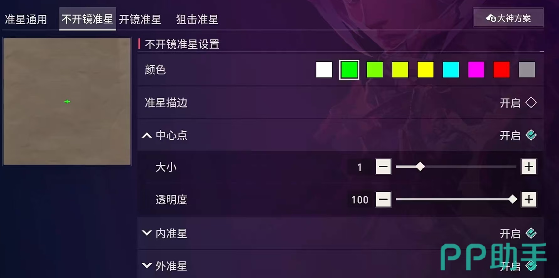 对于初学者而言,推荐选用十字型准星。该样式具备清晰的中心定位点,便于判断子弹落点与枪口抖动方向,适用于多种武器类型,尤其利于狙击枪或中远距离交火场景。建议将中心点大小设为偏小或适中,辅助线长度调至适中或略短,有助于快速切换目标和灵活转向。进阶玩家则可尝试单点式准星,仅保留一个小圆点作为瞄准核心,避免遮挡敌人轮廓,更适合追求极致精准度的操作风格。此时应关闭“显示内侧十字准心”与“显示外侧十字准心”,开启“中心点”功能,并适当调节中心点厚度及轮廓粗细以获得最佳视觉反馈。
