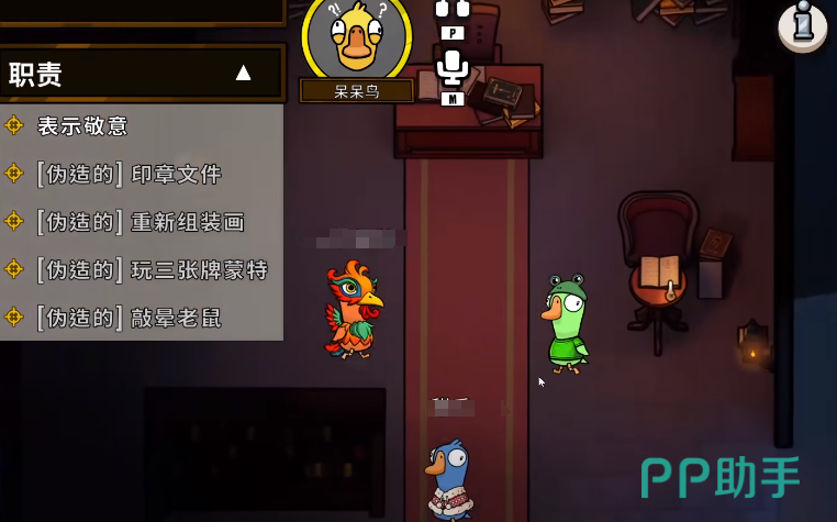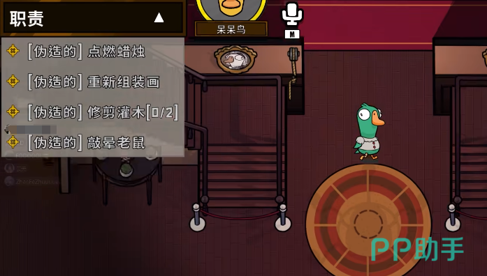 在游戏中,所有角色被划分为三大阵营:鹅、鸭与中立。呆呆鸟归属于中立阵营,其胜利方式极为另类——并不依赖于击杀敌人或完成任务,而是需要在会议环节中被其他玩家成功投票出局。这意味着,呆呆鸟的最终目标是让自己成为众矢之的。只要在讨论阶段引发足够怀疑,并最终被多数票驱逐,即可直接赢得对局,而无需关心其他阵营之间的胜负结果。