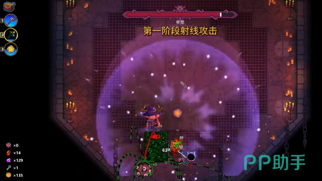 该boss在第一阶段拥有两种主要攻击模式。第一种为双线激光发射后接单向翻滚突进,此时应立即使用闪电疾行技能横向位移,避开激光路径与冲撞区域。第二种则是释放可旋转的双向激光,分为顺时针和逆时针两种形式。玩家需观察boss身上光球的朝向,预判激光旋转轨迹,防止被逼入角落。若不慎被困墙角,可启用角色体型缩小技能,降低受击面积以争取反击机会。