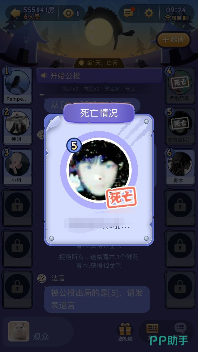 (5)守卫和女巫同时救一人会导致该人死亡;