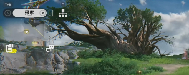 相较于前两处场景的冷硬质感,宏山则展现出截然不同的美学意境。步入该区域,视野瞬间被大片绿意占据,远处垂柳随风轻摆,阳光洒落林间,勾勒出如诗般的山水画卷。此处巧妙融合现代科技与自然景观,空中漂浮着高科技风筝,水面停靠着竹筏,醒目的标语点缀其间,传统国风与前沿设计和谐共存。随着探索推进,背景中缓缓响起古筝旋律,为空旷之地增添一丝灵动与紧张氛围。