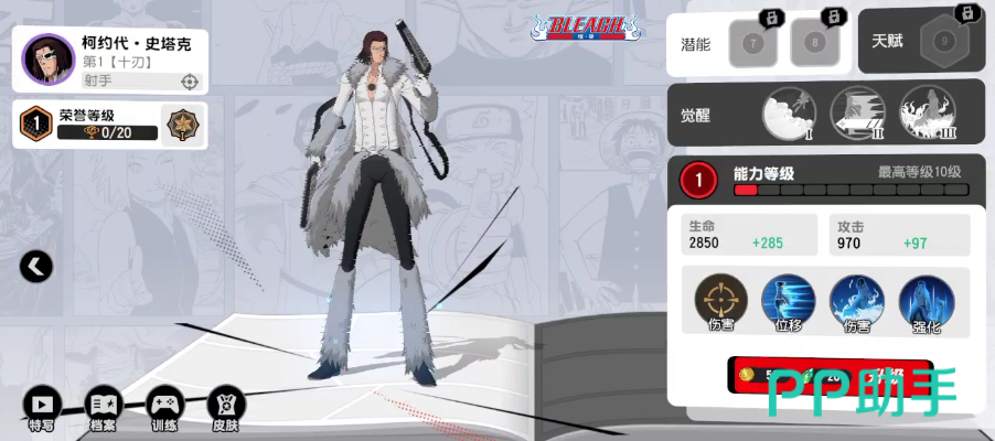 来自《死神》的第一十刃史塔克,在游戏中定位为射手,擅长远程火力压制。普通攻击呈窄矩形范围,适合精准打击。技能支持向指定方向短距离闪现,同时获得额外普攻次数,提高输出频率。觉醒后可延长位移距离,配合天赋可在使用技能后强化下一次普攻。