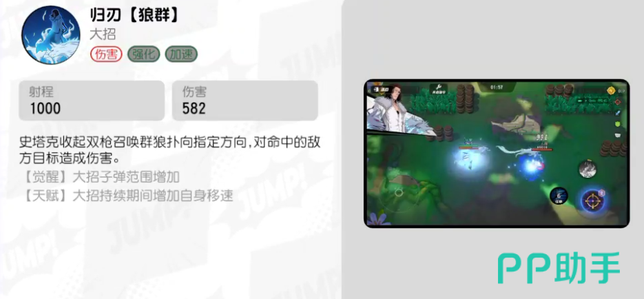 大招开启后向前方持续扫射子弹,期间提升自身移动速度,形成高强度火力网,对群体敌人构成显著威胁。被动技能使普攻具备穿透效果,且周期性强化下一次普通攻击。合理衔接被动强化普攻与大招连招,能在短时间内打出巨额爆发伤害,但需要一定的操作技巧来最大化输出效率。