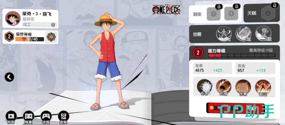 作为三大核心战士代表——路飞、孙悟空和鸣人,三者均被设定为初始可选角色。以路飞为例,他的技能组合兼具灵活性与打击感。普通攻击为四段连续打击,可在移动过程中施放,覆盖范围适中,名为“橡皮机关枪”。技能“橡皮火箭”允许他伸长手臂抓取目标或障碍物,随后迅速拉近自身位置并造成伤害,类似于MOBA类游戏中的位移钩技,但机制为自我牵引。