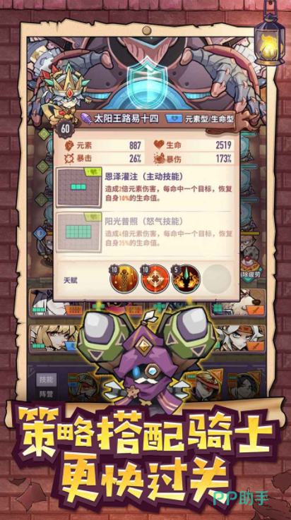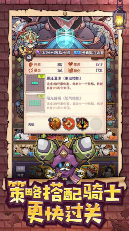 每场战斗节奏紧凑,通常在两分钟内即可完成一次对局。除了基础属性外,骑士还能通过升级、天赋解锁、装备强化以及镶嵌宝石等方式不断提升实力。随着养成系统的深入,角色能力将持续进化,适应更高难度的挑战。此外,游戏内置多人协作玩法,支持与好友组队收集资源碎片,共同挑战高阶敌人,提升互动体验。