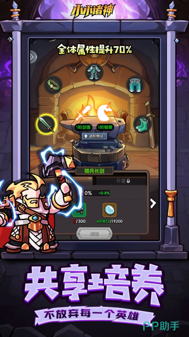 对于新手玩家来说,英雄培养往往是耗时又费资源的过程,但在《小小诸神》中这一点得到了极大改善。游戏采用了同步成长机制,只需重点培养一名英雄,其余角色也会随之获得属性提升,无需反复刷取材料,大幅节省了养成时间,让玩家更专注于策略搭配与实战操作。
