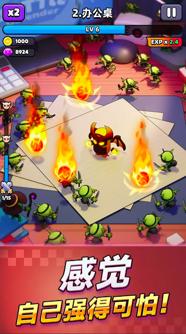 当角色积累足够经验后将升级,并触发三选一的随机增益效果,强化战斗能力。此外,击败BOSS后会掉落技能宝箱,玩家可从中拾取1至5个新技能,用于应对后续更强力的敌人,持续构建个性化战斗流派,直至成功通关。