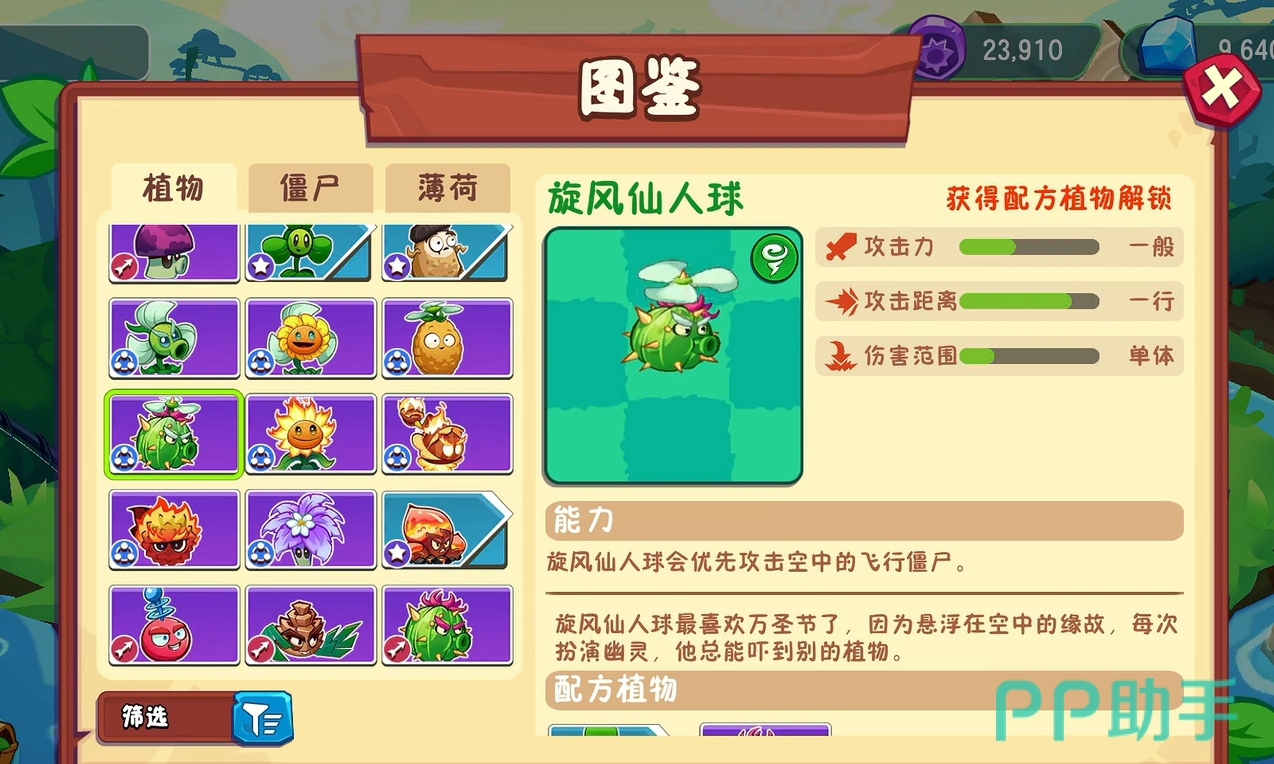 通过三叶草与仙人球融合获得,具备独特的空中作战能力。不仅能对地面单位发起攻击,还可主动升空摧毁气球僵尸的载具,迫使其降落至地面以便后续处理。该植物默认优先锁定空中目标,确保防线不会被飞行单位绕后突破,是构建立体防御体系的关键组件。