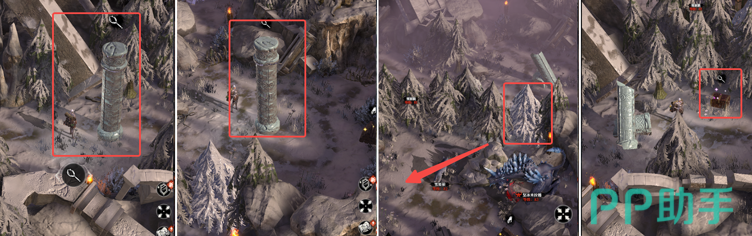 此外,地图内还藏有一个关键事件:位于入口右侧的宝箱,必须依次破坏三根特定图腾柱才能开启。第一根图腾柱需角色力量≥300方可摧毁;第二根位于右侧,要求力量≥1160;最后一根处于左下方,需满足力量≥1220。完成全部破坏后返回入口,即可打开宝箱,获取遗迹石板3号。