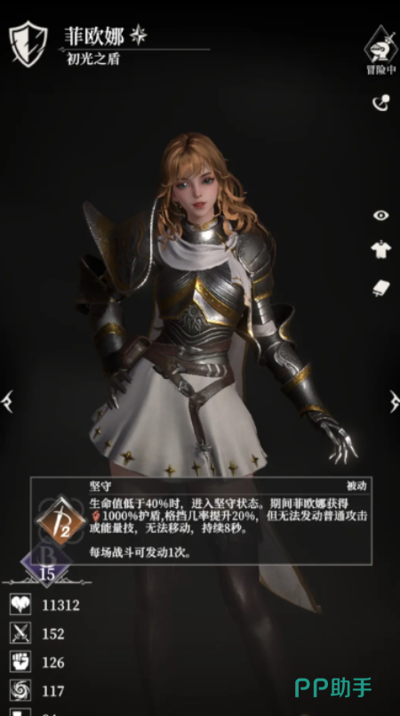 补充说明:初光之盾,虽然不属于输出类角色,但作为前排坦克极为可靠。拥有强大的防御属性和格挡机制,能够频繁打断敌方攻势并施加眩晕控制。当生命值低于40%时,自动激活坚守状态,获得相当于自身最大生命值1000%的护盾,并提升20%格挡率,是团队中不可或缺的保护型角色。
