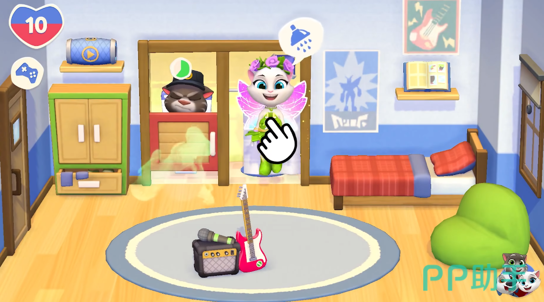 作为系列的进阶之作,本作在玩法层面实现了显著拓展。除了熟悉的伙伴安吉拉外,游戏中新增了多位可互动角色。玩家可以邀请好友一同参与篮球赛、游泳挑战、滑板竞速,甚至进入虚拟现实场景进行沉浸式互动,小游戏类型更加丰富,大幅提升养成过程的趣味性与可玩性。