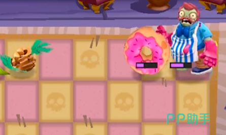 甜甜圈推手僵尸是中后期的主要威胁之一,本体具备285点生命值,携带的甜甜圈附件更拥有700点生命值,同时造成150+1000的复合伤害,整体数值处于较高水平。最佳应对策略为分离打击:先用窝瓜击飞甜甜圈附件,使其脱离保护状态,再集中火力使用玉米加农炮消灭孤立的本体。