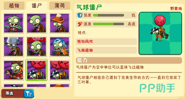 气球僵尸延续了空中单位的经典设定,具备230点生命值,在地面移动速度为26,飞行状态下提升至30。这一机动性使其能够绕开传统地面防线形成突袭。虽然免疫多数地面攻击,但仍可被三叶草产生的飓风吹离战场。实战中可优先种植猫尾草进行针对性打击,或升级仙人掌以增强对空输出能力,有效遏制其空中优势。