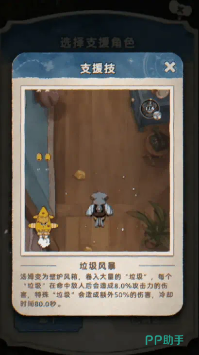 值得注意的是,杰瑞的能量不会随时间自动恢复,每次投出一个水果可回复20%终结技能量,因此合理使用水果是快速释放大招的关键。此外,他的专属支援技能将召唤汤姆出场,使杰瑞进入风箱形态并获得短暂无敌,同时吸入大量垃圾进行反击——普通垃圾命中敌人造成8%伤害,特殊垃圾额外附加50%伤害。