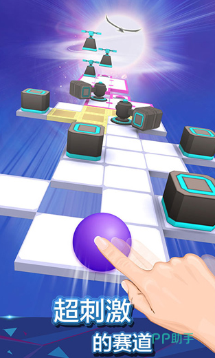 本作是一款节奏感极强的音乐跑酷类游戏,玩家通过滑动屏幕操控小球穿越山丘、森林、天空等多元主题关卡。背景音乐随场景切换同步变化,每个地图配有独立电子乐曲,结合动态光影效果,营造出强烈的视听冲击。操作方式简单直观,仅需左右滑动控制方向,但关卡内布满旋转平台、移动方块、飞刺石等复杂机关,部分还引入地板突变、透明云层等复合机制,极大提升了环境适应难度。随着进度推进,挑战逐步升级,从基础直线行进到S型走位,再到高频率旋转平台应对,全面考验反应速度与空间判断能力。