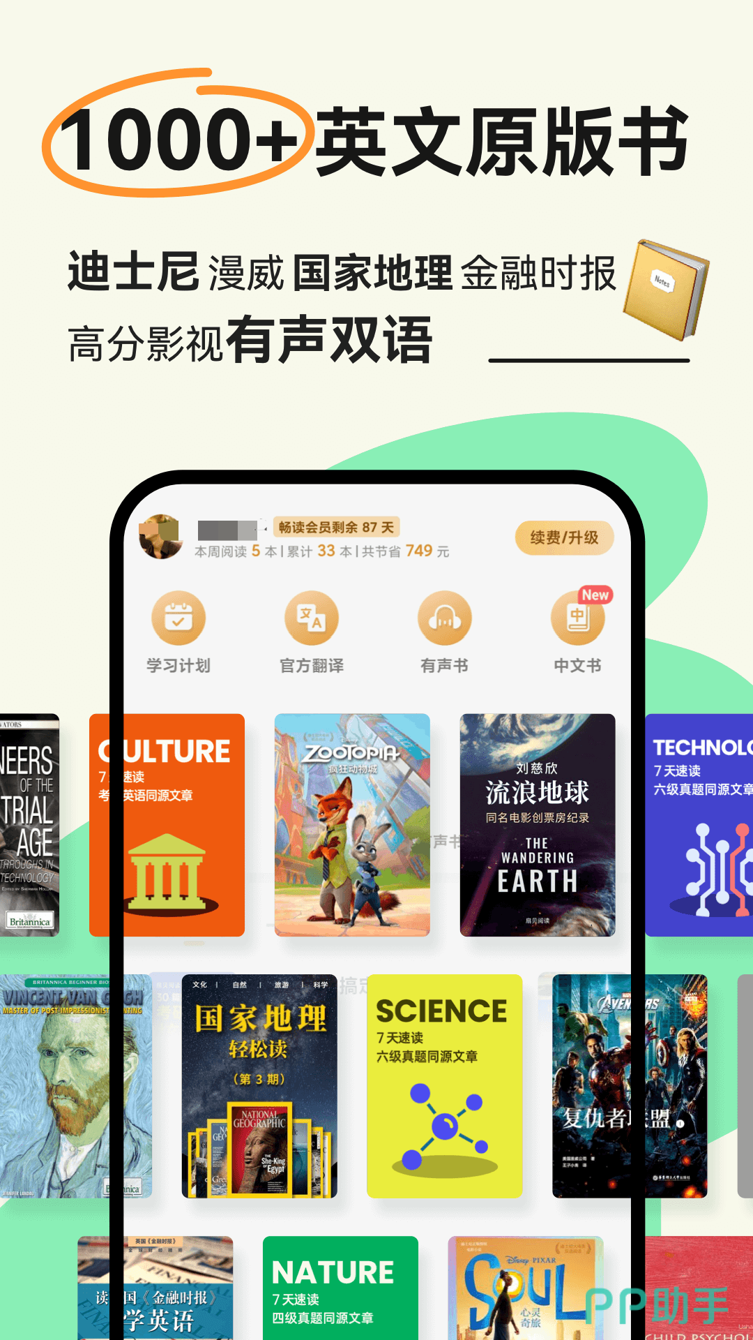 该平台汇集了大量英文原版内容,包括小说、人物传记、科技前沿和商业资讯等多个领域,满足不同用户的阅读偏好。其核心亮点在于创新的即点即查功能,用户在阅读过程中遇到生词只需轻点屏幕,即可快速查看释义,无需跳转页面或切换词典,极大提升了阅读连贯性与学习效率。
