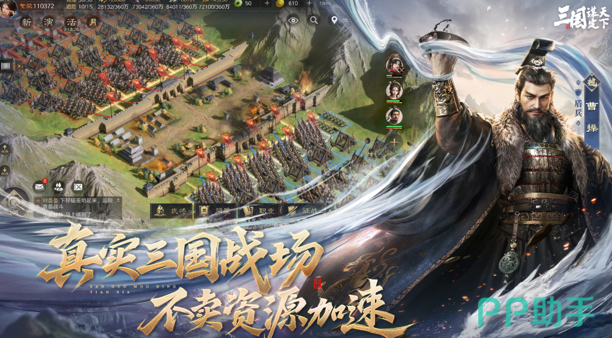 三国:谋定天下注重策略平衡与资源管理,提供写实风格的沙盘战场。玩家可通过占领城池、培养武将、调配兵种来增强实力。职业与兵种组合多样,节奏紧凑,适合喜欢快节奏对抗的军事策略爱好者深入体验。