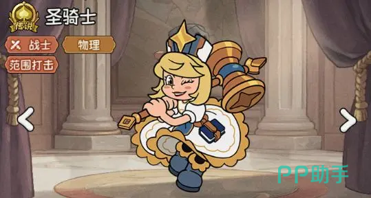 作为以物理输出为核心的战士类英雄,圣骑士属于传说级别单位,具备良好的范围打击能力,同时兼顾伤害输出与战场生存性,整体表现均衡,非常适合新人玩家上手操作。其被动技能“迅捷共鸣”可在战斗开始时,使自身及相邻十字格内的友军获得20%攻速加成。另一被动“震荡打击”让普通攻击附带额外30%攻击力的范围伤害。大招“圣光降临”可释放神圣之力,对范围内敌人造成相当于其攻击力50%的伤害,是兼具支援与输出的多面手角色。