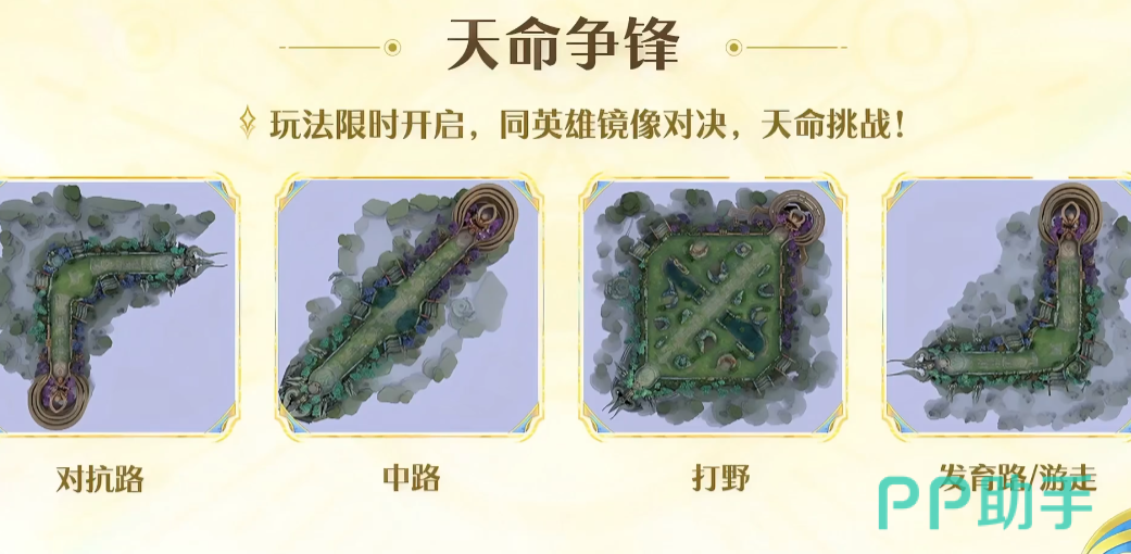 玩法层面同样迎来创新,全新单人竞技模式“天命争锋”即将上线,根据不同分路匹配专属地图进行对决;此外还有同英雄镜像挑战模式,系统会为你匹配操控相同英雄的对手展开1v1较量,每位英雄设有独立排行榜,极大提升了技术比拼的乐趣。