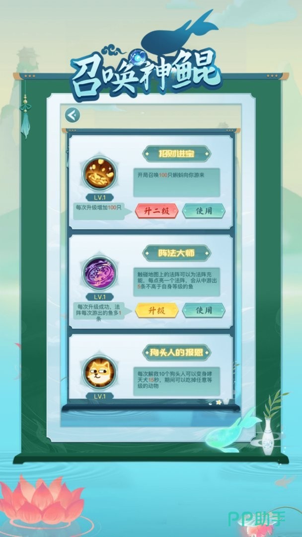 采用清新卡通美术风格,营造轻松愉悦的游戏氛围。每位玩家初始都拥有一条幼小鱼类,目标是将其培养成力压群雄的神鲲。玩法结合合成机制,相同种类的鱼合并后可升阶为更高级形态。随着进程推进,稀有鱼种陆续解锁,最终有机会合成鲲。成功获得鲲不仅象征成就达成,还可领取丰厚金币奖励,助力后续养成。