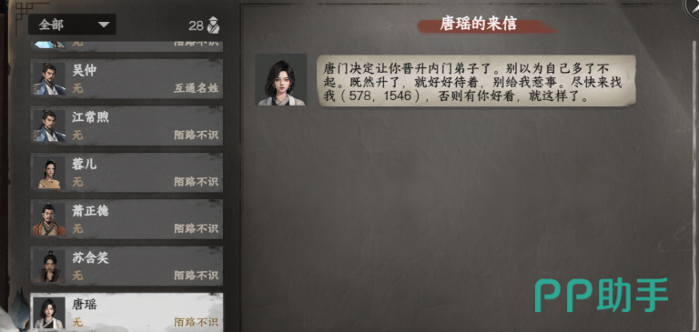 要成为唐门弟子,首先需满足三项基础属性要求:炼器、墨学、巧手均需达到50点。满足后可前往寻找NPC唐儒进行对话,获得鸡冠石信物,随后与唐如隋交谈并接取入门任务。完成指定任务后,即可正式拜入唐门,开启暗器武学之路。