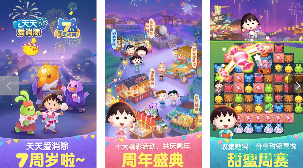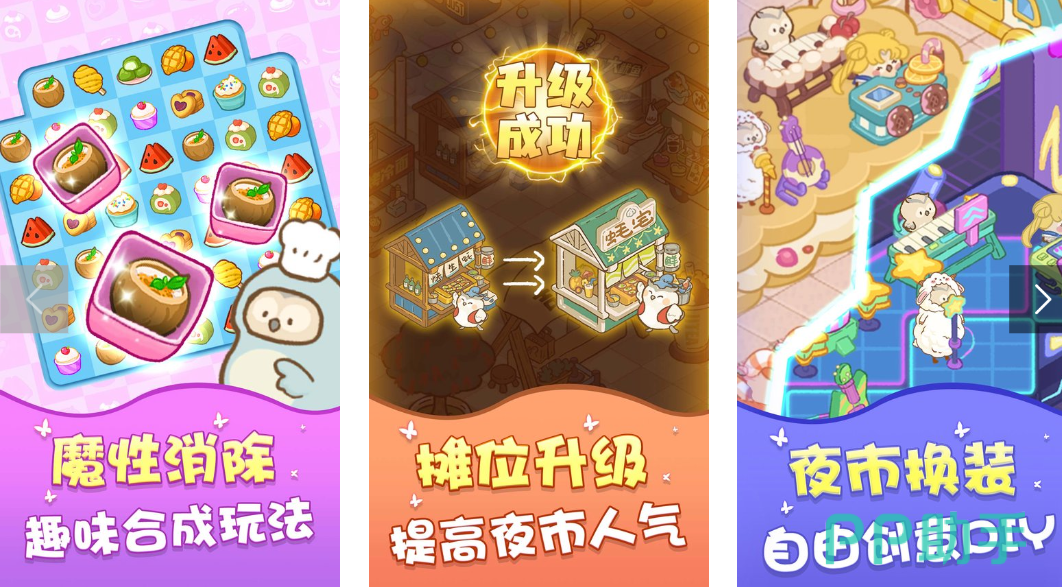 该游戏画风温暖治愈,延续经典点击消除机制,相同方块一次性消除数量越多,得分越高。在《欢乐消消消》中,玩家将扮演猫头鹰小镇夜市的管理者,通过消除清理环境、合成物资完成任务,逐步升级摊位,提升人气,推动夜市繁荣发展。