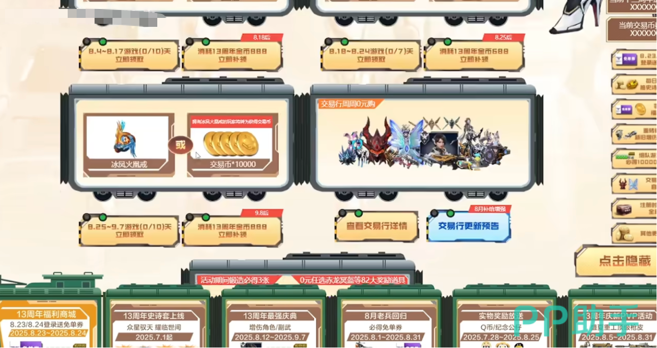 目前正值逆战手游十三周年庆典,福利商城已限时开启,活动将持续至10月8日。交易行补给商城设有常驻及其他分类模块,玩家可通过多种途径积累交易币兑换所需道具。每周登录打卡可领取奖励,前四次分别获得金币、使用时长以及套装部件或碎片,第五次有机会直接解锁四件套或获取129史诗碎片。此外,每日登录还可获得交易行专属折扣券,助力玩家节省开支。