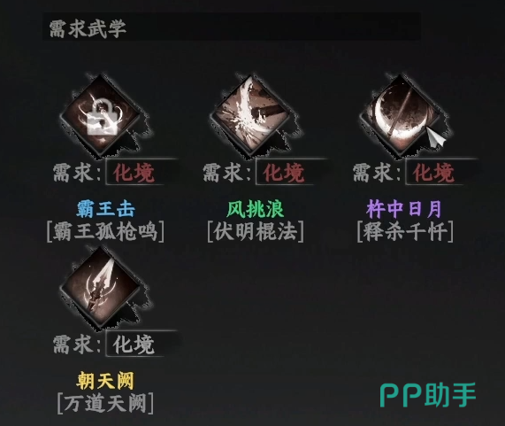 “霸王击”则需前往鸿月门,通过完成其发布的悬赏任务来换取该秘籍。至于“杵中日月”和“朝天阙”,则需要前往大雪山,与大长老对话并使用相应资源进行兑换。