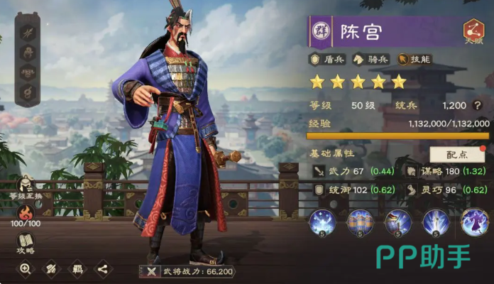 虽为紫卡武将,但陈宫的实际表现远超品级预期。他拥有较强的范围治疗能力,且因谋略属性成长优异,治疗量相当可观。“天地不仁”可在区域内为多名队友恢复兵力,维持战场兵力平衡;