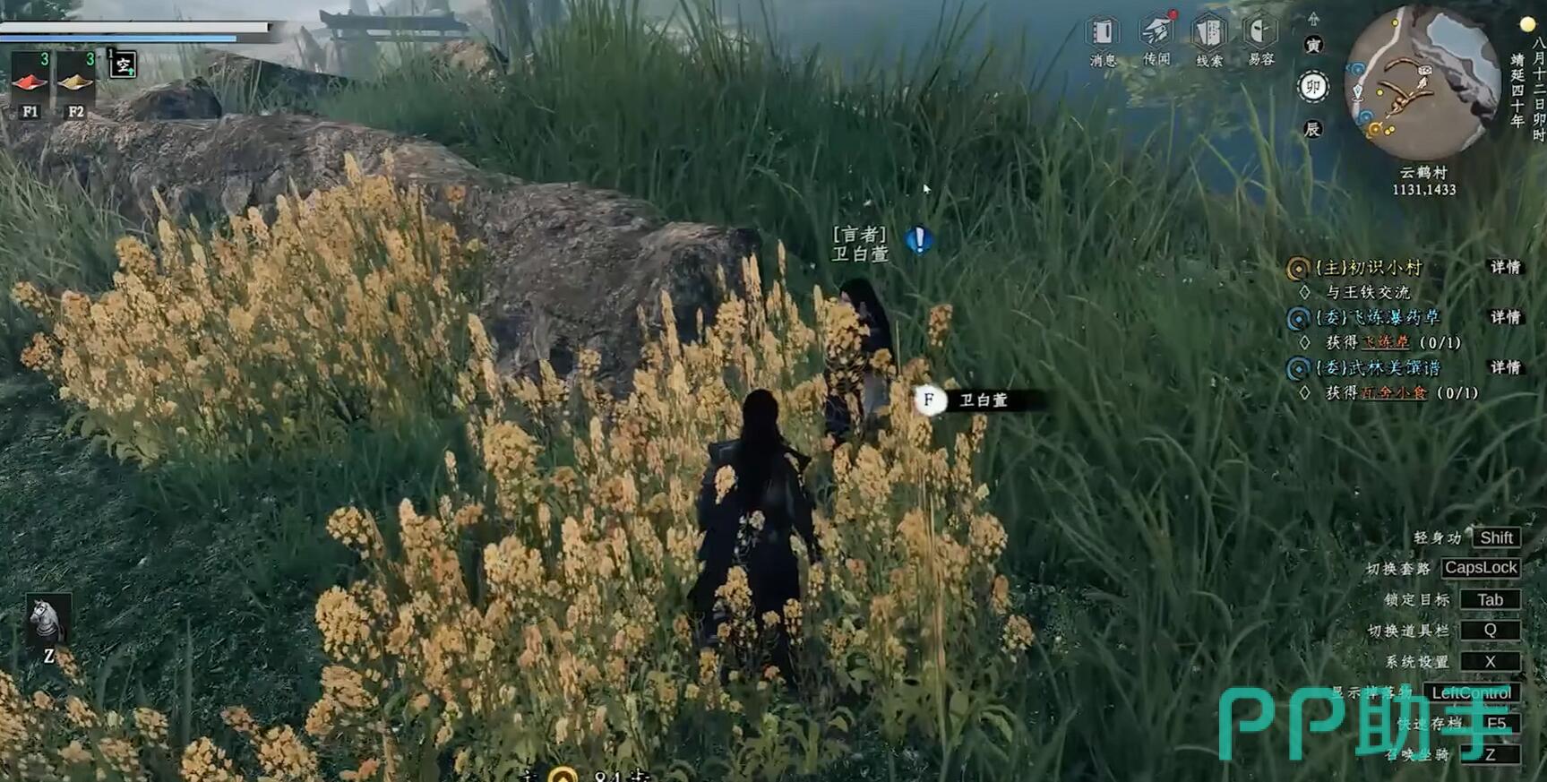 任务初期包含三项试炼挑战。第一项"踏雪无痕"要求玩家在30秒内,依次踩过枫晚林区域(坐标205,447)的七块浮石抵达对岸,若中途落水则需重新开始。第二项"追风逐月"需在未时前到达落星滩(坐标887,1562),并采集生长于悬崖边的星纹草,此地点必须通过二段跳衔接冲刺轻功才能攀上。第三项"负重疾行"考验耐力,需背负谢长风提供的50斤沙袋,从临安南门奔跑至北门,期间禁止使用任何轻功技巧,且必须在90秒内完成全程。