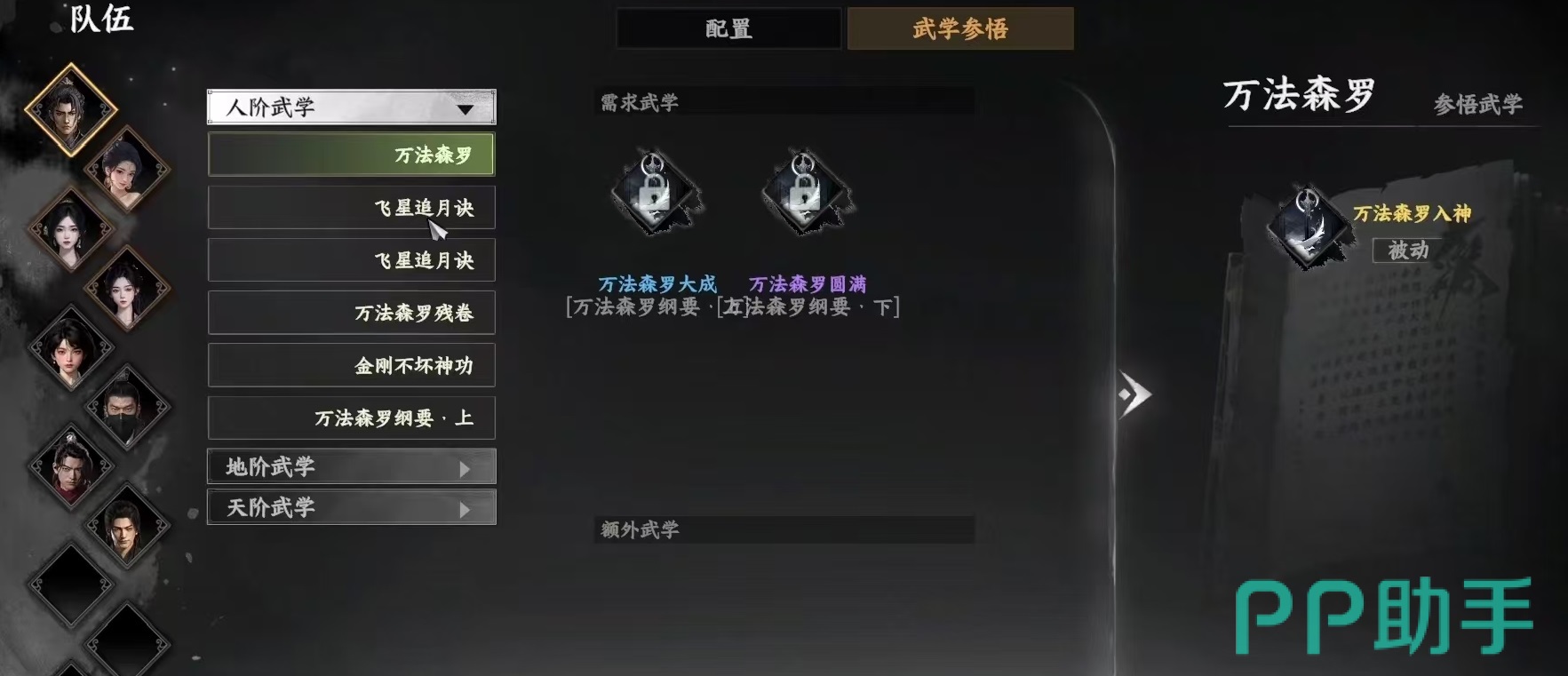 第四项万法森罗是一项极为强大的全局增益技能,适合所有职业流派选择。习得后,角色的根骨、筋骨、内息与体魄四项基础属性各提升40点,同时受到的伤害降低20%。虽然在初期剧情中有短暂体验机会,但在主线新手阶段结束后会暂时消失,需等待后续剧情推进方可重新学习。