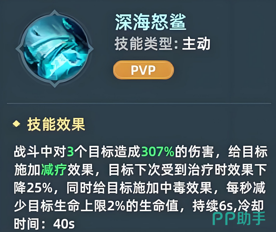 幽海龙灵可通过常规宠物招募系统抽取获得,但因其稀有度为MR级别,实际获取需要一定的运气支撑。其核心技能名为“深海怒杀”,属于主动释放型技能,能够在战斗中同时攻击三名敌人,并附加双重负面状态:一是减疗效果,使目标在接受治疗时疗效降低25%;二是中毒状态,每秒造成相当于目标生命上限2%的真实伤害,持续6秒。该技能冷却时间为40秒,在持久战中具备极强的压制能力。