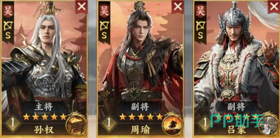 孙权、周瑜与吕蒙构成的持续伤害体系。孙权可对范围敌人施加易伤状态,并提升全队主动技能伤害;周瑜擅长施加高额燃烧DOT伤害;吕蒙则针对已处于燃烧状态的目标进一步提升输出效率。三者联动下,能在大规模团战中持续消耗敌方血量,发挥出色群体压制作用。