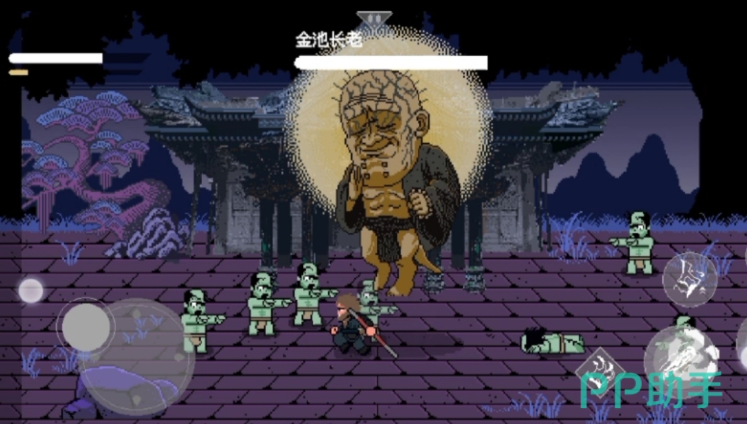基于西游题材重新演绎的暗黑风格像素游戏,塑造了一个截然不同的神话世界。玩家操控“黑暗悟空”角色,手持金箍棒展开激烈战斗,从杂兵小妖一路打到终极BOSS。角色形象与场景设定均采用阴郁色调,打破传统视觉印象,构建出压抑而深邃的氛围。游戏操作简单直接,移动与攻击配合流畅,带来沉浸式的横版闯关体验。