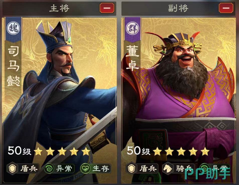 另一种可行的搭配思路是司马懿与董卓组合。董卓觉醒后可大幅提升盾兵单位的生命上限,显著增强前排抗压能力。其被动还能提高敌方所受异常状态的伤害,完美契合司马懿依赖负面效果打输出的特点。配合司马懿本身的高谋略属性,整体输出效率大幅提升。在装备与等级成型后,该阵容兼具坦度与持续输出,再辅以司马懿的回血机制,几乎可以实现低损通关各类副本。