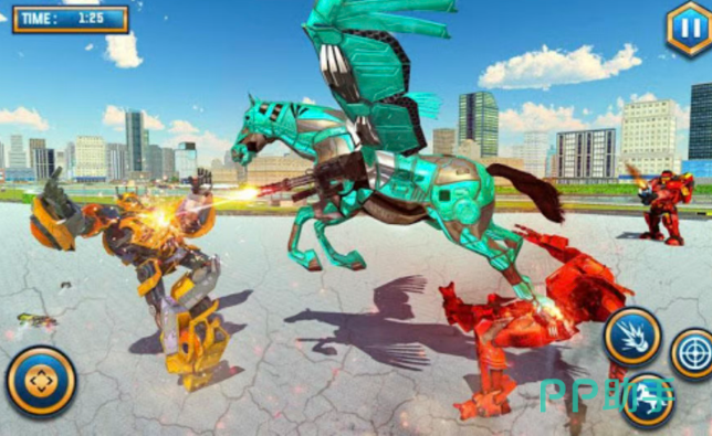 本作是一款融合变形设定的单机机甲动作游戏。主角机器人可变形成机器鲨,在海底与城市之间高速移动。采用双摇杆操作模式,支持大范围探索与实时战斗。场景建模精细,包含立体的城市结构与深海地形。小地图显示敌方位置便于战术部署,变身过程动画流畅霸气,配合金属质感音效,极大增强了游戏的沉浸感。