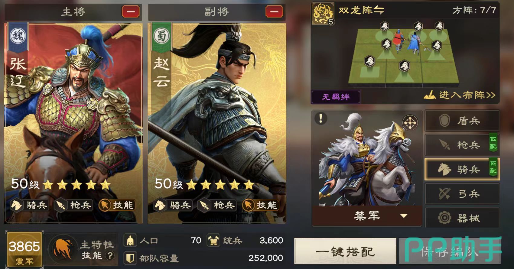 技能骑则专注于爆发式打击,适用于快速消耗敌人有生力量的小规模交战。推荐张辽与赵云组合,兵种配置禁军,以获得击飞概率与暴击率加成。当张辽的催坚破盾技能升至满级时,全队怒气恢复速度显著提升,而赵云自身也具备回怒属性,使得两人联手下技能释放频率大幅增加。在此基础上,结合高额技能倍率与暴击输出特性,可在短时间内打出成吨伤害,实现高效歼敌。