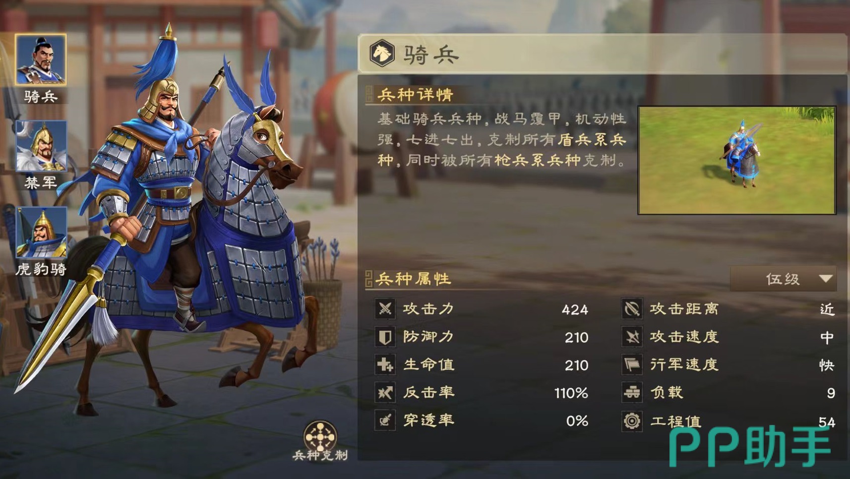 游戏中的骑兵体系源自三国时期著名的精锐部队,目前包含禁军、白马义从与虎豹骑三大特殊兵种。这些兵种不仅具备攻防均衡的特点,还拥有出色的战场机动能力,在对阵盾兵时具有明显克制效果。根据战术定位不同,骑兵主要分为控制骑和技能骑两种发展方向,配合冲锋、包抄等战术手段,能在团战或小规模冲突中发挥决定性作用。