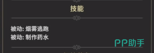 既然获得了角色,就让我们开始看一下炼金术士的技能如何吧,在玩家们获得角色之后就会发现炼金术士的职业技能,主要有两个,一个是烟雾逃跑,另外一个则是制作药水,第一个技能烟雾逃跑是一个比较有意思的技能,在战斗中并且是任何战斗中都拥有一定的概率可以直接快速逃离,在游戏对局时将掷骰子的消耗数量减少一个,在某一些对局中,他的逃跑会很大程度上的让队伍整体保留实力;第二技能是制作药水,这个技能是比较实用的技能了,当玩家们在进行回合游戏时,回合结束后,炼金术士会有一定的概率直接获得一个随机药水也有可能是一个水雷,在对局中这些药水可能会起到一些比较关键的作用。