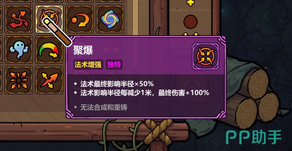 聚爆(法术增伤+100%,影响范围缩小):该法术是构建高爆发输出体系的核心之一。虽然本身不具备独立清场能力,但在已有追踪或鼠标跟随类技能的基础上叠加使用,能显著提升整体输出表现。配合法球分裂效果,单次施法可触发三次小型爆炸,大幅增强群体清除效率,尤其适合应对密集敌人场景。