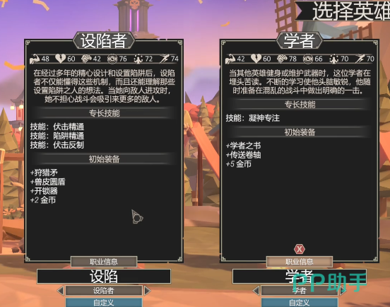 游戏初期即可使用的四位基础角色无需额外解锁,完成新手引导后便可自由选择。铁匠拥有极高的力量值,属于典型的前排核心单位,既能承担大量伤害,也可切换为进攻形态打出爆发输出,尤其在面对复数敌人时,其范围攻击能力表现突出。猎人则以敏捷见长,擅长远程打击,凭借先手优势和高暴击率的弓术,能在战斗初期迅速削弱敌方战力。学者专精于法术体系,智力属性优异,能够释放强力范围魔法,对群体目标造成毁灭性打击。最后是吟游诗人,虽然个人输出偏低,但其增益技能极为关键,可通过演奏乐曲提升全队攻击力,显著增强团队整体作战效率。