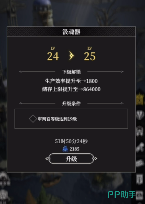神秘晶体的核心用途在于升级汲魂器这一功能性建筑。汲魂器每小时可自动产出60点魂值,随着等级提高,单位时间内的产量也会相应增加。然而需要注意的是,魂值的存储存在上限限制:当玩家角色等级达到10级时,最大储存量为1000点;升至25级时上限提升至2500点。即便后续等级继续增长,例如达到50级,存储容量也不会再突破2500点
