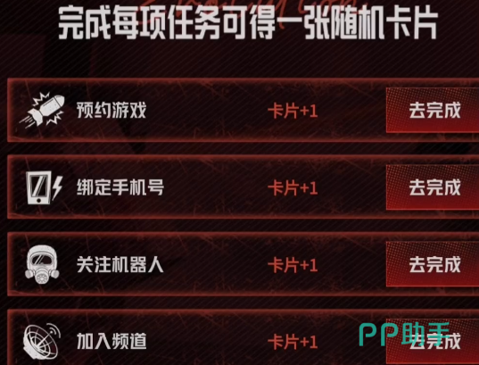目前游戏尚未正式上线,但已开启限时测试资格获取通道。在2025年9月4日至9月21日期间,玩家可通过完成指定任务收集三类专属卡牌:资源采集卡、枪械战斗卡和爆破对战卡。每成功集齐一张卡牌,即可参与一次实物抽奖,集齐全部三张还能解锁珍贵的测试名额。这三张卡牌不仅象征着游戏的核心玩法体系——采集、建造与战斗,也代表了不同阶段的生存策略方向。