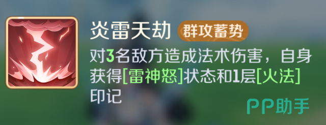 此外,九龙冰封作为一项兼具控制与伤害的群攻技能,可影响四个敌方单位,主目标还将承受额外增伤效果,同时为天宫积累一层水法印记。而炎雷天劫则是一个高战略价值的蓄力型技能,不仅能对三名敌人造成法术伤害,还会使角色进入雷神怒状态,提升整体输出强度,并额外增加一层火法印记。这些技能之间相互衔接,构成了天宫复杂且高效的输出链条。