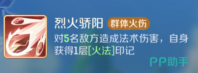 与之形成互补的是烈火骄阳,这是一项覆盖范围广的群体火属性技能,可同时打击五名敌人,并在释放后为使用者叠加一层火法印记。两种基础技能分别对应不同元素体系,为后续技能组合提供了丰富的策略空间。