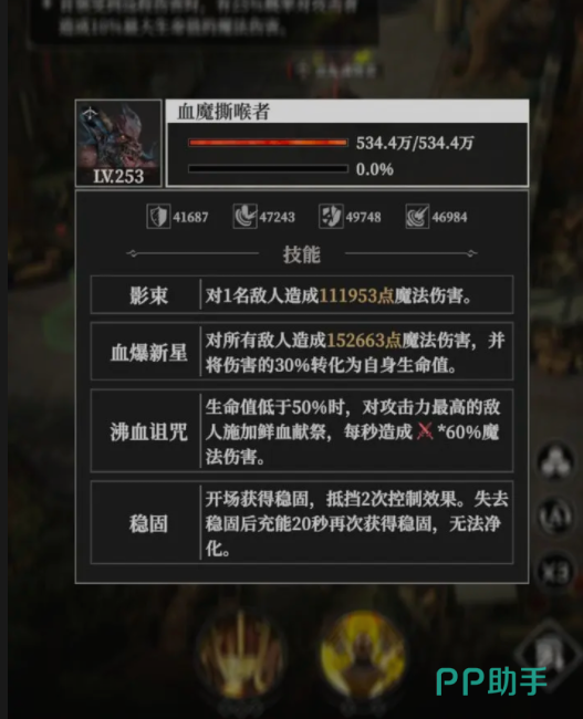 在正式交战前,了解血魔撕喉者的技能组合是取胜的前提。这位BOSS共拥有四项技能,每一项都具备较高的威胁性。第一个技能为“影束”,会随机锁定我方一名单位释放魔法伤害。由于目标不可预测,建议队伍中配置具备高抗性或闪避能力的角色,以降低被击中的概率,同时可通过站位调整减少关键成员受到波及的风险。